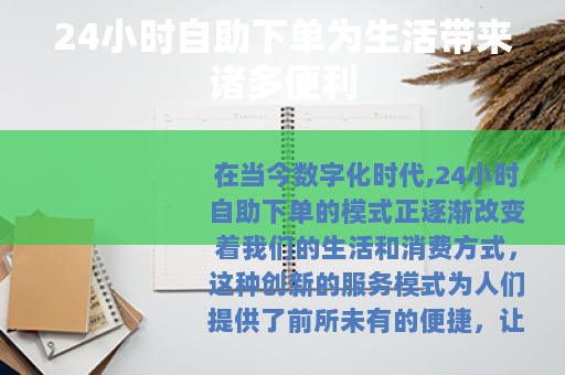在当今数字化时代,24小时自助下单的模式正逐渐改变着我们的生活和消费方式,这种创新的服务模式为人们提供了前所未有的便捷,让购物、订餐、预约等各种日常事务变得更加高效和轻松。