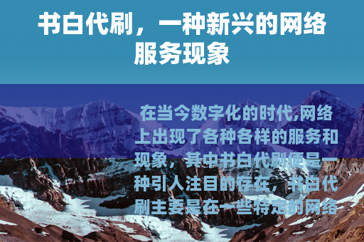 在当今数字化的时代,网络上出现了各种各样的服务和现象,其中书白代刷便是一种引人注目的存在,书白代刷主要是在一些特定的网络平台和应用场景中兴起的,它通常涉及到对某些书籍、文章或其他文字内容的阅读量、点赞量、评论量等数据的提升操作。