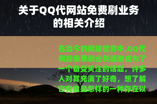 在当今的网络世界中,QQ代网站免费刷业务逐渐成为了一个备受关注的话题,许多人对其充满了好奇,想了解它究竟是怎样的一种存在以及能为用户带来哪些便利。