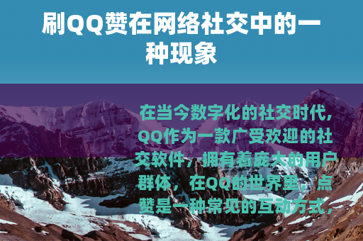 在当今数字化的社交时代,QQ作为一款广受欢迎的社交软件,拥有着庞大的用户群体,在QQ的世界里,点赞是一种常见的互动方式,它代表着对他人的认可、喜爱或支持,而刷QQ赞这一行为也随之悄然兴起,成为了一个值得关注的现象。