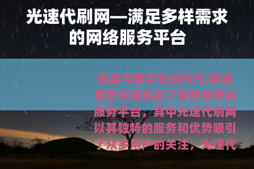 在当今数字化的时代,网络世界中涌现出了各种各样的服务平台,其中光速代刷网以其独特的服务和优势吸引了众多用户的关注。