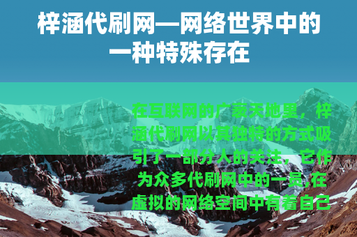 在互联网的广袤天地里,梓涵代刷网以其独特的方式吸引了一部分人的关注,它作为众多代刷网中的一员,在虚拟的网络空间中有着自己的一套运作模式。