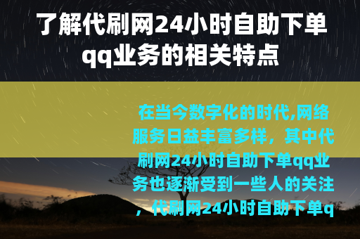 在当今数字化的时代,网络服务日益丰富多样,其中代刷网24小时自助下单qq业务也逐渐受到一些人的关注。