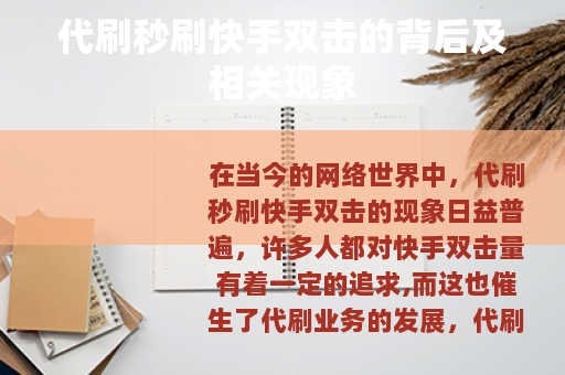 在当今的网络世界中,代刷秒刷快手双击的现象日益普遍,许多人都对快手双击量有着一定的追求,而这也催生了代刷业务的发展。