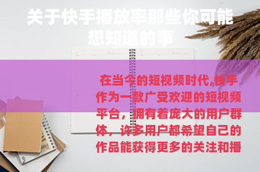 我们要明白,快手的播放率是由多种因素决定的,内容的质量是最为关键的一点,一个有趣、有价值、有创意的视频往往更容易吸引用户的观看和分享,从而自然而然地提高播放率,创作者们需要用心去策划和制作视频,从选题、拍摄到剪辑,每一个环节都要精益求精,才能打造出受大众喜爱的作品。