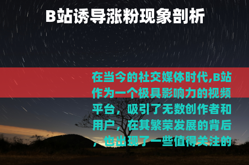 在当今的社交媒体时代,B站作为一个极具影响力的视频平台,吸引了无数创作者和用户,在其繁荣发展的背后,也出现了一些值得关注的现象,其中之一便是诱导涨粉行为。