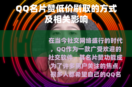 在当今社交网络盛行的时代,QQ作为一款广受欢迎的社交软件,其名片赞功能成为了许多用户关注的焦点,很多人都希望自己的QQ名片能够获得大量的赞,以展示自己的人气和社交魅力,而低价刷QQ名片赞的现象也随之应运而生。