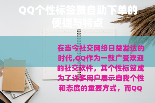 在当今社交网络日益发达的时代,QQ作为一款广受欢迎的社交软件,其个性标签成为了许多用户展示自我个性和态度的重要方式,而QQ个性标签赞自助下单服务也随之兴起,为用户提供了一种快速增加个性标签赞的途径,具有诸多独特的优势和特点。