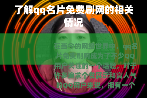 在当今的网络世界中,qq名片免费刷网成为了不少QQ用户关注的一个话题,对于许多追求个性展示和高人气的QQ用户来说,拥有一个独特且引人注目的QQ名片是他们所期望的,而免费刷网似乎提供了这样一个便捷的途径。