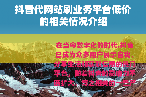 在当今数字化的时代,抖音已成为众多用户展示自我、分享生活和获取信息的热门平台,随着抖音的影响力不断扩大,与之相关的一些产业也应运而生,其中就包括抖音代网站刷业务平台低价这一现象。