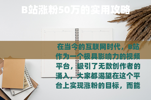 在当今的互联网时代,B站作为一个极具影响力的视频平台,吸引了无数创作者的涌入,大家都渴望在这个平台上实现涨粉的目标,而能涨粉50万更是许多创作者梦寐以求的事情,以下是一些关于在B站涨粉50万的有效方法。 质量是关键,要创作出有吸引力、有价值的视频内容,深入了解你的目标受众,知道他们感兴趣的话题是什么,然后围绕这些话题进行创作,无论是有趣的搞笑视频、深度的知识科普,还是精彩的生活记录,都要确保内容能够引起观众的共鸣,让他们在观看后有所收获,这样才能吸引他们持续关注你的账号,从而为涨粉打下坚实的基础。