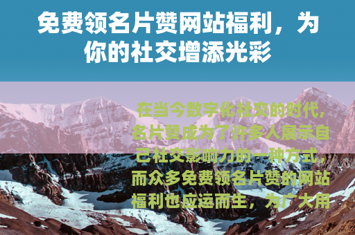 在当今数字化社交的时代,名片赞成为了许多人展示自己社交影响力的一种方式,而众多免费领名片赞的网站福利也应运而生,为广大用户带来了意想不到的便利和惊喜。