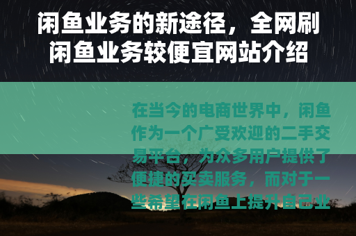 在当今的电商世界中,闲鱼作为一个广受欢迎的二手交易平台,为众多用户提供了便捷的买卖服务,而对于一些希望在闲鱼上提升自己业务量的用户来说,寻找全网刷闲鱼业务最便宜的网站成为了一个重要的课题。