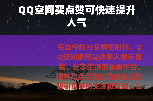 在当今的社交网络时代,QQ空间依然是许多人展示自我、分享生活的重要平台,拥有高点赞数的动态往往能吸引更多的关注和互动,让用户感受到自己的分享得到了他人的认可和喜爱,QQ空间买点赞这一现象逐渐兴起。