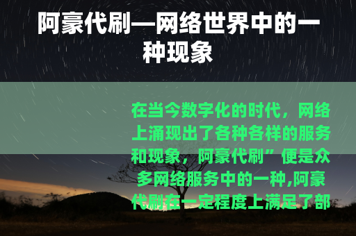 在当今数字化的时代,网络上涌现出了各种各样的服务和现象,阿豪代刷”便是众多网络服务中的一种,阿豪代刷在一定程度上满足了部分用户在网络平台上对于数据增长的需求。