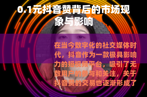 在当今数字化的社交媒体时代,抖音作为一款极具影响力的短视频平台,吸引了无数用户的参与和关注,关于抖音赞的交易也逐渐形成了一个独特的市场,0.1元抖音赞便是这个市场中较为常见的一种现象。