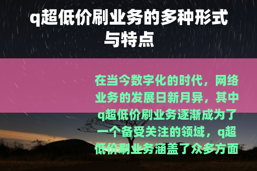 在当今数字化的时代,网络业务的发展日新月异,其中q超低价刷业务逐渐成为了一个备受关注的领域,q超低价刷业务涵盖了众多方面,为用户提供了多种独特的体验和价值。