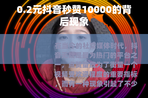 在当今的社交媒体时代,抖音无疑是最为热门的平台之一,点赞量成为了衡量一个视频受欢迎程度的重要指标,而有一种现象引起了不少人的关注,那就是声称只需0.2元就能在抖音上秒赞10000的服务。