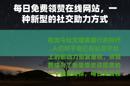 在当今社交媒体盛行的时代,人们对于自己在社交平台上的影响力愈发重视,点赞数成为了衡量受欢迎程度的一个重要指标,每日免费领赞在线网站应运而生,为广大用户提供了一种独特的社交助力途径。