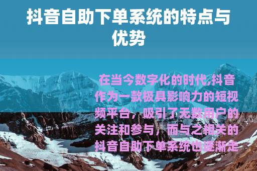 在当今数字化的时代,抖音作为一款极具影响力的短视频平台,吸引了无数用户的关注和参与,而与之相关的抖音自助下单系统也逐渐走进了人们的视野,为用户提供了更加便捷和多样化的服务。