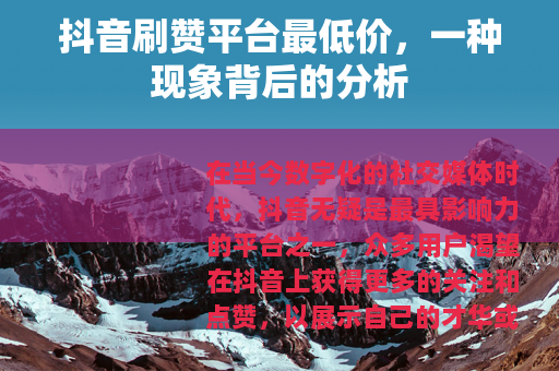 在当今数字化的社交媒体时代,抖音无疑是最具影响力的平台之一,众多用户渴望在抖音上获得更多的关注和点赞,以展示自己的才华或产品,从而催生了抖音刷赞平台这一特殊的市场现象,其中最低价的刷赞平台更是吸引了不少人的目光。