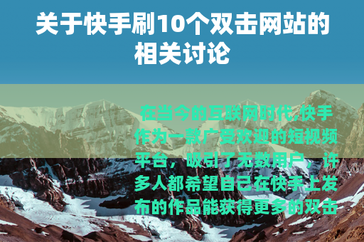 在当今的互联网时代,快手作为一款广受欢迎的短视频平台,吸引了无数用户,许多人都希望自己在快手上发布的作品能获得更多的双击,从而提高作品的热度和曝光度,在这样的需求下,一些所谓的快手刷10个双击网站便应运而生。
