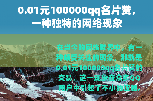 在当今的网络世界中,有一种颇受关注的现象,那就是0.01元100000qq名片赞的交易,这一现象在众多QQ用户中引起了不小的波澜,成为了大家热议的话题之一。