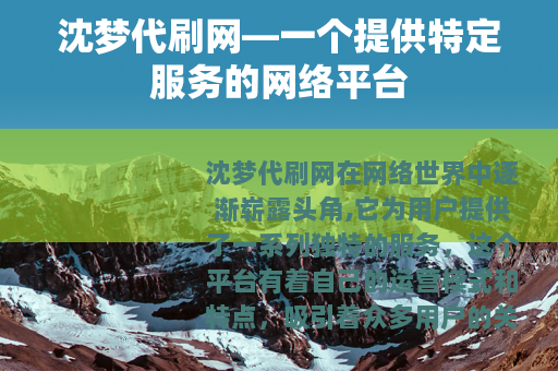 沈梦代刷网在网络世界中逐渐崭露头角,它为用户提供了一系列独特的服务,这个平台有着自己的运营模式和特点,吸引着众多用户的关注。