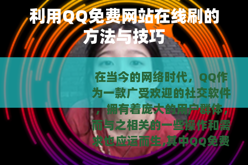 在当今的网络时代,QQ作为一款广受欢迎的社交软件,拥有着庞大的用户群体,而与之相关的一些操作和需求也应运而生,其中QQ免费网站在线刷的话题引起了不少人的关注。