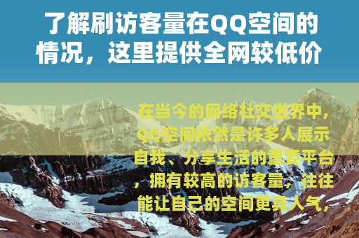 在当今的网络社交世界中,QQ空间依然是许多人展示自我、分享生活的重要平台,拥有较高的访客量,往往能让自己的空间更具人气,也能让自己的动态得到更多人的关注,刷访客量的服务便应运而生。