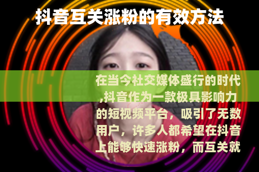 在当今社交媒体盛行的时代,抖音作为一款极具影响力的短视频平台,吸引了无数用户,许多人都希望在抖音上能够快速涨粉,而互关就是一种常见且有效的方式。
