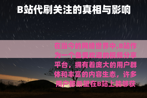 在当今的网络世界中,B站作为一个备受欢迎的视频分享平台,拥有着庞大的用户群体和丰富的内容生态,许多用户都希望在B站上能够获得更多的关注,从而提升自己的影响力和创作动力,一种名为“b站代刷关注”的现象也随之悄然兴起。