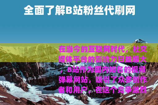 在当今的互联网时代,社交媒体平台的影响力日益增大,B站作为国内知名的视频弹幕网站,吸引了众多创作者和用户,在这个竞争激烈的环境下,一些人开始关注到所谓的“b站粉丝代刷网”。