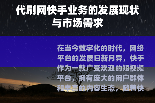 在当今数字化的时代,网络平台的发展日新月异,快手作为一款广受欢迎的短视频平台,拥有庞大的用户群体和丰富的内容生态,随着快手的不断壮大,与之相关的代刷网快手业务也逐渐兴起并在一定范围内获得了市场的关注。