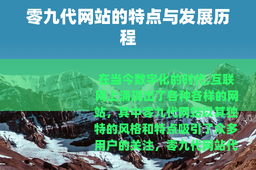 在当今数字化的时代,互联网上涌现出了各种各样的网站,其中零九代网站以其独特的风格和特点吸引了众多用户的关注,零九代网站代表着一种特定时期和技术背景下的网络产物,它在互联网的发展历程中有着自己的一席之地。