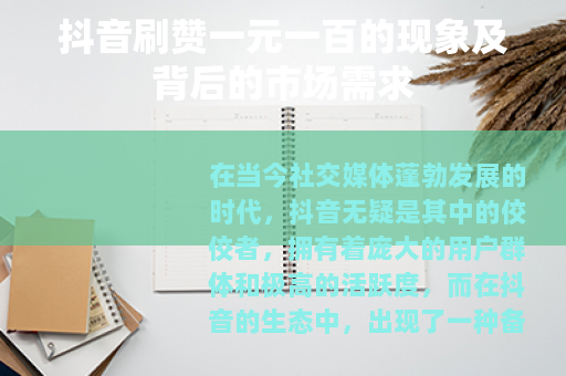 在当今社交媒体蓬勃发展的时代,抖音无疑是其中的佼佼者,拥有着庞大的用户群体和极高的活跃度,而在抖音的生态中,出现了一种备受关注的现象,那就是所谓的“抖音刷赞一元一百”。