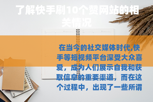 在当今的社交媒体时代,快手等短视频平台深受大众喜爱,成为人们展示自我和获取信息的重要渠道,而在这个过程中,出现了一些所谓的快手刷10个赞网站。