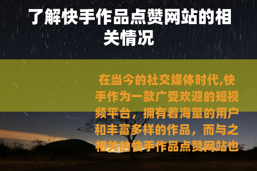在当今的社交媒体时代,快手作为一款广受欢迎的短视频平台,拥有着海量的用户和丰富多样的作品,而与之相关的快手作品点赞网站也逐渐进入了人们的视野。