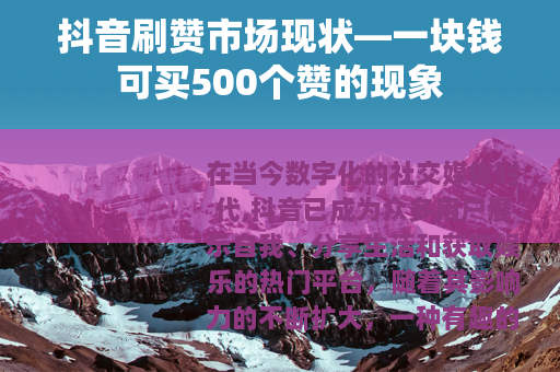 在当今数字化的社交媒体时代,抖音已成为众多用户展示自我、分享生活和获取娱乐的热门平台,随着其影响力的不断扩大,一种有趣的现象也随之出现,那就是抖音刷赞服务,其中一块钱能买500个赞的情况更是引起了不少人的关注。