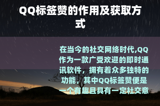 在当今的社交网络时代,QQ作为一款广受欢迎的即时通讯软件,拥有着众多独特的功能,其中QQ标签赞便是一个有趣且具有一定社交意义的元素。