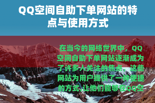 在当今的网络世界中,QQ空间自助下单网站逐渐成为了许多人关注的焦点,这些网站为用户提供了一种便捷的方式,让他们能够在QQ空间中实现各种个性化的操作和功能增强。