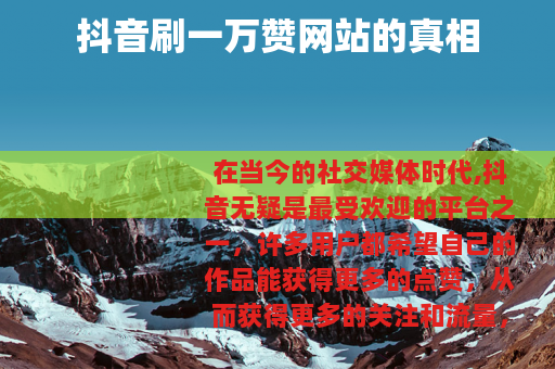 在当今的社交媒体时代,抖音无疑是最受欢迎的平台之一,许多用户都希望自己的作品能获得更多的点赞,从而获得更多的关注和流量,这也使得一些声称可以提供抖音刷一万赞服务的网站应运而生。