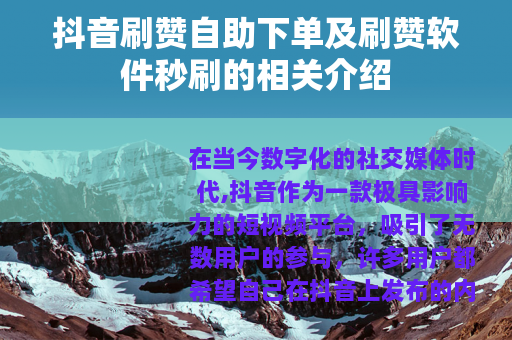 在当今数字化的社交媒体时代,抖音作为一款极具影响力的短视频平台,吸引了无数用户的参与,许多用户都希望自己在抖音上发布的内容能够获得更多的点赞,从而提高自己的知名度和影响力,在这样的需求下,抖音刷赞自助下单以及抖音刷赞软件秒刷等服务应运而生。
