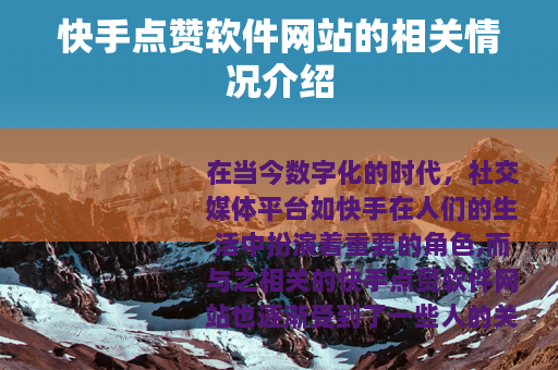 在当今数字化的时代,社交媒体平台如快手在人们的生活中扮演着重要的角色,而与之相关的快手点赞软件网站也逐渐受到了一些人的关注。