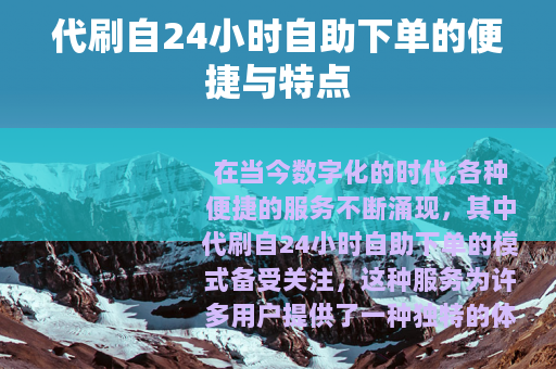 在当今数字化的时代,各种便捷的服务不断涌现,其中代刷自24小时自助下单的模式备受关注,这种服务为许多用户提供了一种独特的体验和便利。