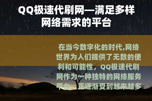 在当今数字化的时代,网络世界为人们提供了无数的便利和可能性,QQ极速代刷网作为一种独特的网络服务平台,正逐渐受到越来越多人的关注和使用。