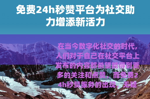 在当今数字化社交的时代,人们对于自己在社交平台上发布的内容都希望能得到更多的关注和点赞,而免费24h秒赞服务的出现,无疑为广大社交用户带来了全新的体验。