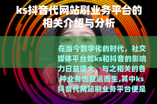 在当今数字化的时代,社交媒体平台如ks和抖音的影响力日益增大,与之相关的各种业务也应运而生,其中ks抖音代网站刷业务平台便是备受关注的一种。