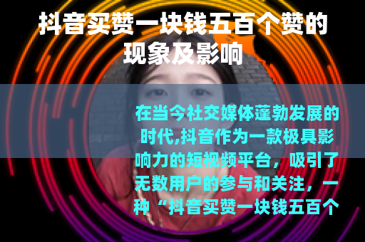 在当今社交媒体蓬勃发展的时代,抖音作为一款极具影响力的短视频平台,吸引了无数用户的参与和关注,一种“抖音买赞一块钱五百个赞”的现象逐渐在一些角落里兴起,引发了人们的广泛讨论和不同的看法。