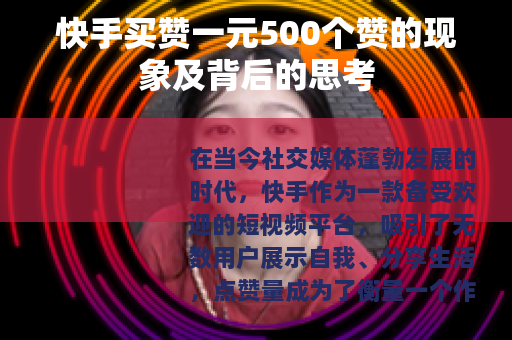 在当今社交媒体蓬勃发展的时代,快手作为一款备受欢迎的短视频平台,吸引了无数用户展示自我、分享生活,点赞量成为了衡量一个作品受欢迎程度的重要指标之一,而在这个背景下,出现了一种所谓“快手买赞一元500个赞”的现象。